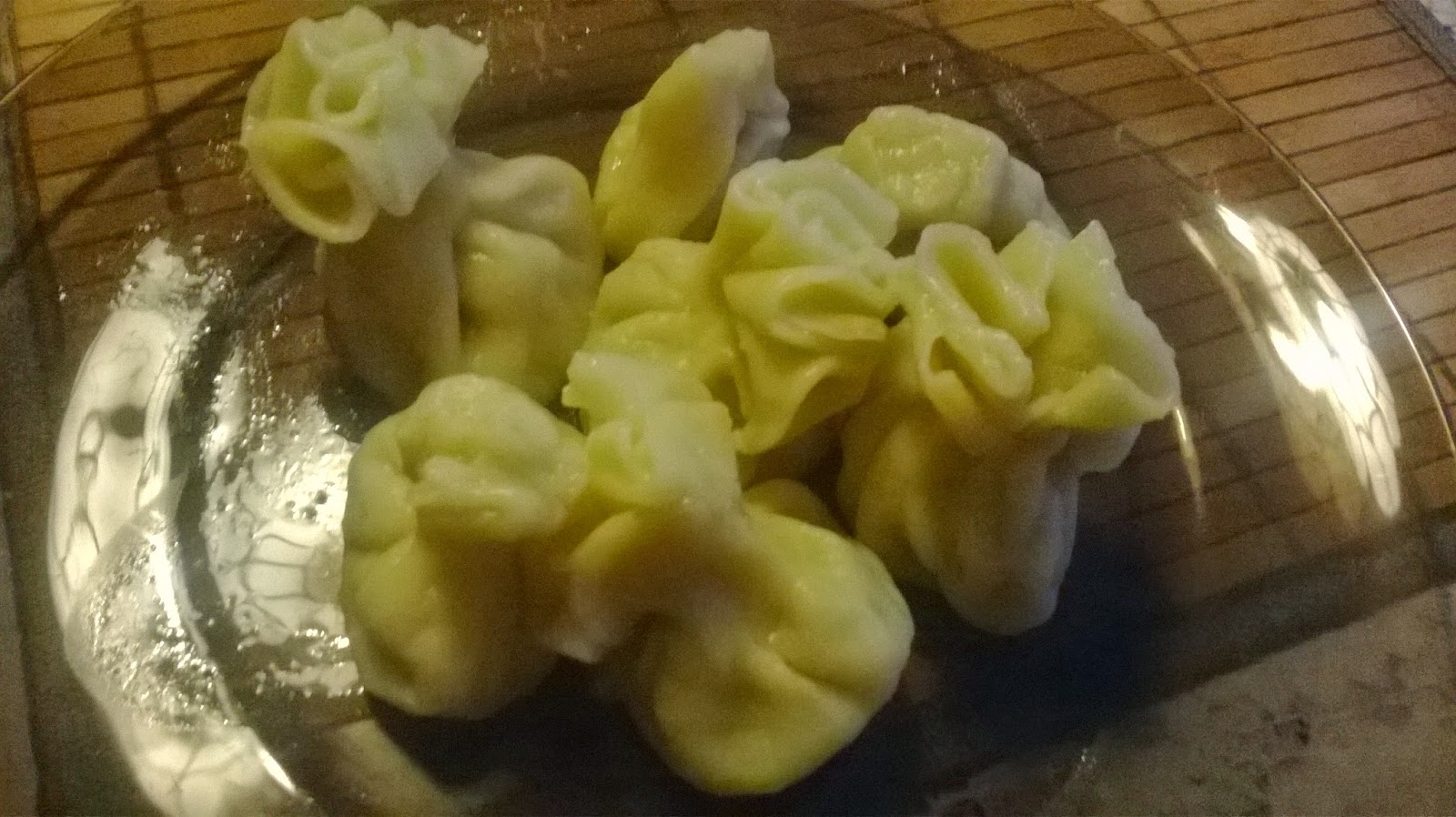 Rozwałkować ciasto i wykroić dość duże kółko ponownie je rozwałkować żeby było wielkości mniej więcej dłoni na środku kładziemy łyżeczkę mięsa i z ciasta tworzymy sakiewkę trzeba mocno docisnąć, żeby podczas gotowania sakiewka nie otworzyła się.