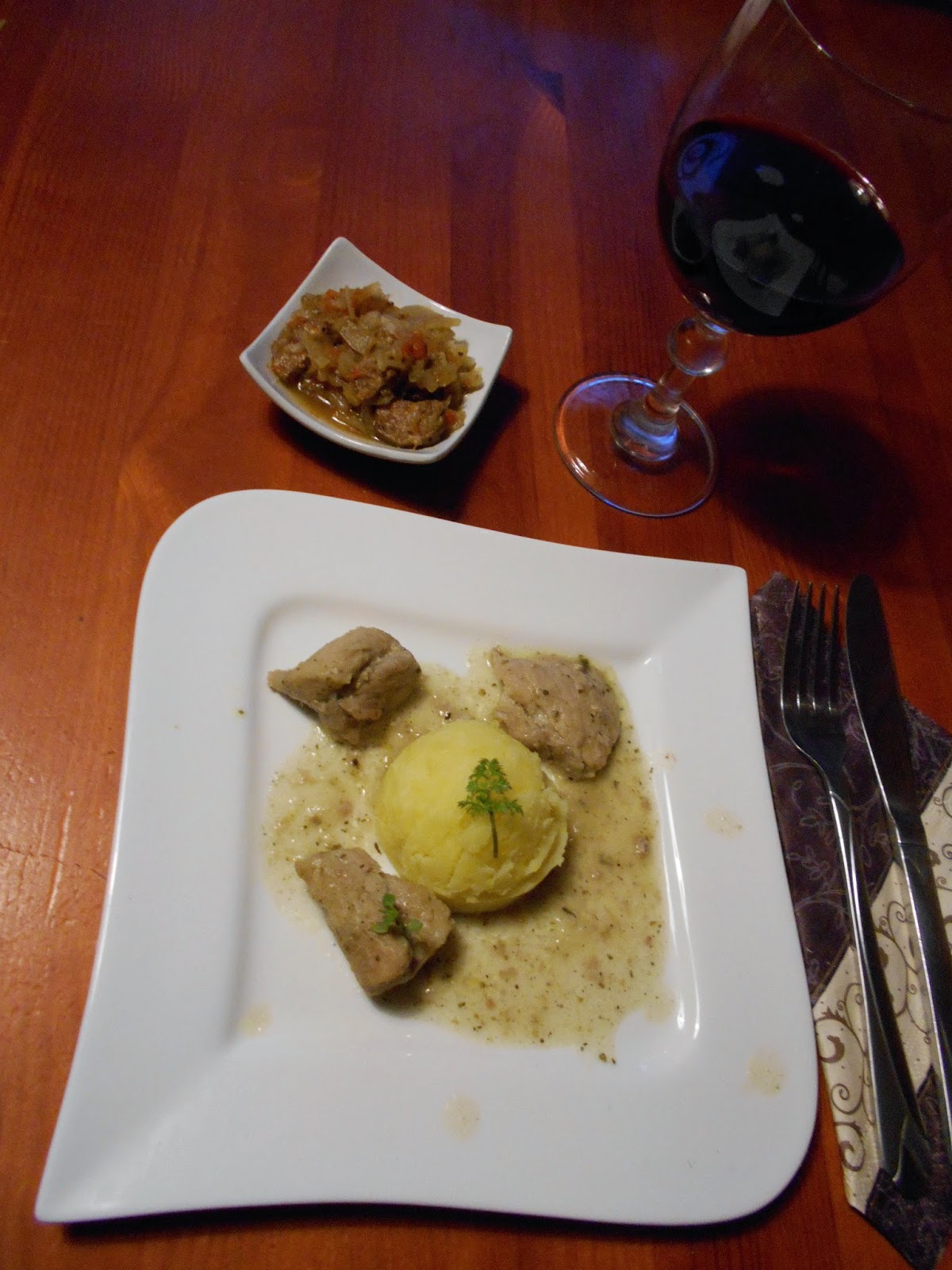 mięso umyć i pokroić w kostkę wrzucić do garnka zalewamy wodę na równi z mięsem solimy, pieprzymy dodajemy czosnek liścia laurowego i pokrojoną w piórka cebulę i prużymy na wolnym ogniu pod przykryciem. Gdy mięso będzie miękkie oprószamy mąką i jednocześnie lekko mieszając. dodajemy zioła prowansalskie, jak ktoś chce może dodać inne które lubi. Gdy się zagotuje odstawiamy i podajemy z ziemniakami lub kaszą.