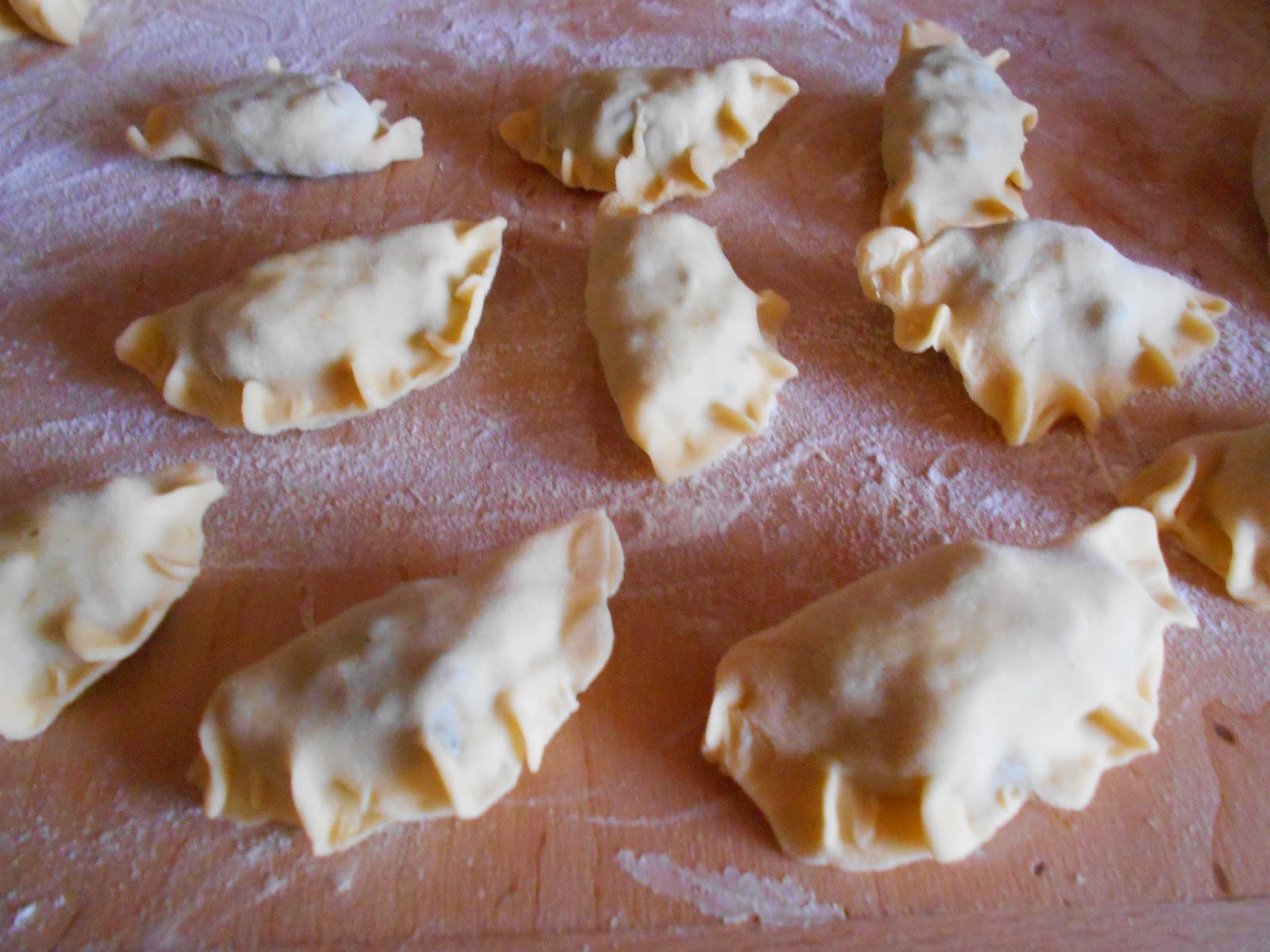 Robimy dołek w mące dodajemy szczyptę soli wlewamy rozbite jajko i powoli lejemy ciepłą wodę z mlekiem ciągle wyrabiając. Wyrabiamy ciasto do momentu odchodzenia ciasta od rąk i stolnicy.