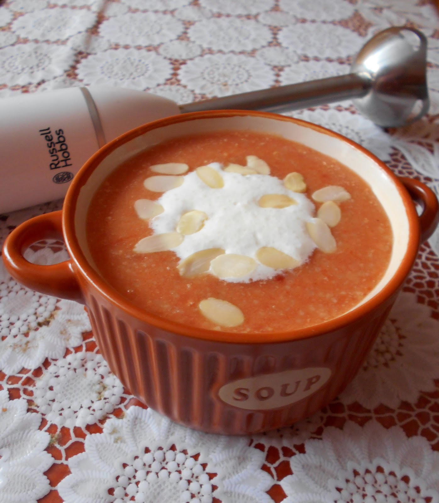 Dzisiaj ugotowałam przepyszną zupkę krem pomidorową z migdałami, przygotowałam ją dzięki uprzejmości firmy Russell Hobbs, która dała mi do przetestowania blender Aura 6w1.