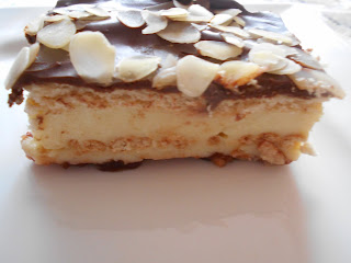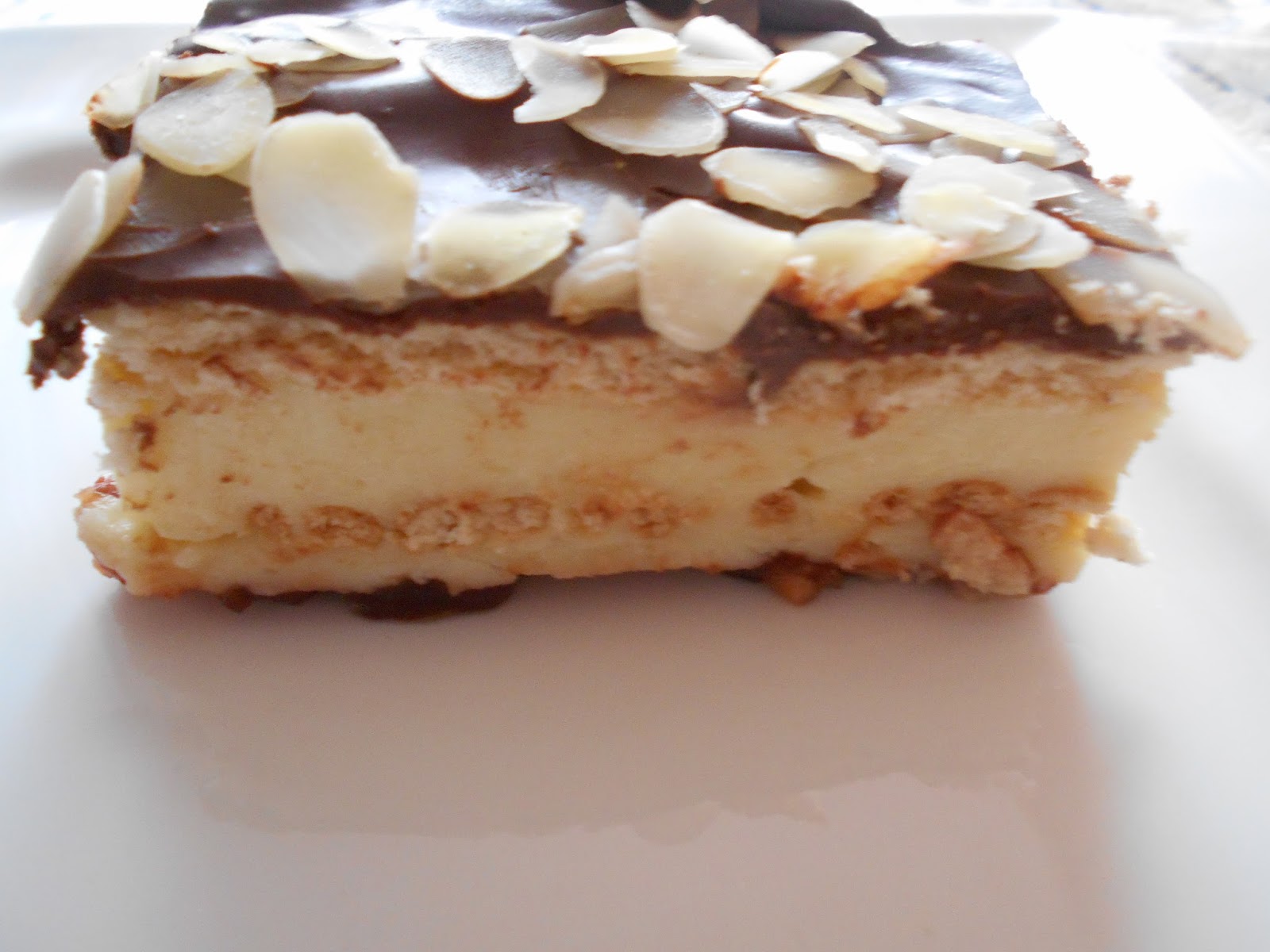 Ugotować budyń jak jest jeszcze gorący wkroić do niego masło i mieszać do całkowitego rozpuszczenia i zrobienia się jednolitej masy. Zetrzeć na tarce o grubych oczkach chałwę i wymieszać. Na dno formy wyłożyć herbatniki i posmarować powidłami na to połowę naszej masy i kolejna warstwa herbatników i następna warstwa budyniowo-chałwowa i przykrywamy ostatnią warstwą herbatników. Do niewielkiego garnka wlewamy śmietanę i rozpuszczamy w niej czekolady nie doprowadzając do wrzenia mieszamy do uzyskania jednolitej dość gęstej masy, trochę przestudzamy i lejemy na ciasto, posypujemy płatkami migdałowymi i gotowe! życzę smacznego!