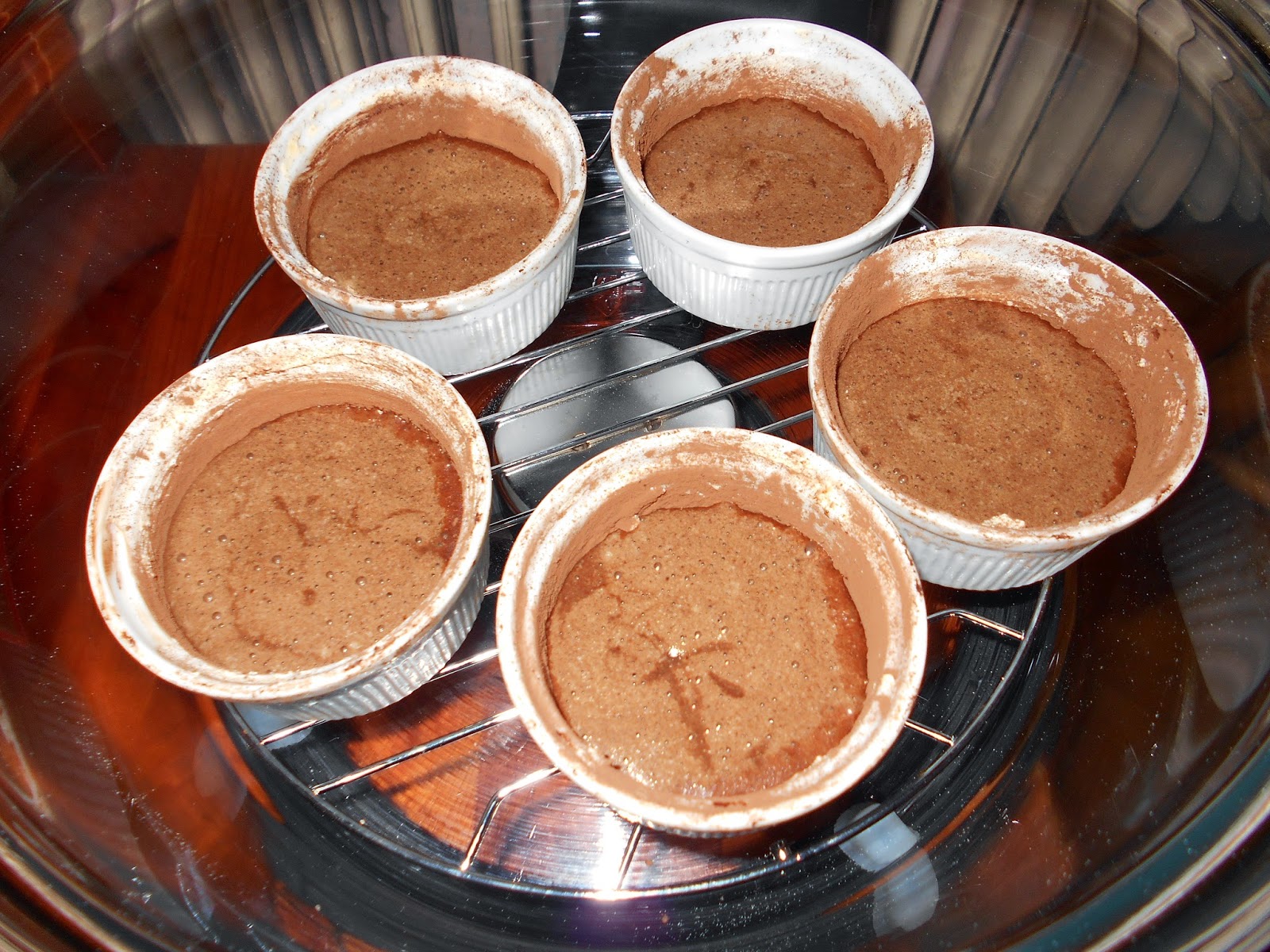 Kokilki smarujemy masłem i kakao. Do małego garnka wlewamy śmietanę, gotujemy na małym ogniu stopniowo dodając czekoladę, gdy czekolada będzie prawie rozpuszczona ściągamy garnek z gazu. Oddzielamy białka od żółtek żółtka wbijamy do naszej masy czekoladowej mieszamy i odkładamy do przestudzenia. Białka bijemy na pianę nie do końca sztywną z solą i cukrem.