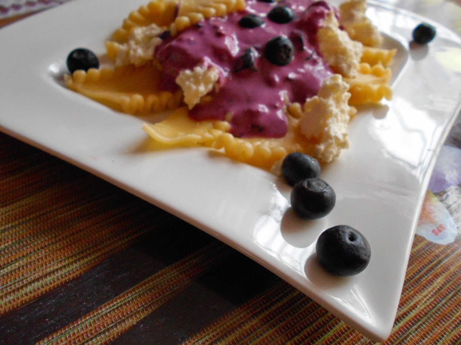 Witajcie! Dzisiaj przychodzę do was z kolejną słodką propozycją na obiad, jest to makaron z białym serem i sosem borówkowym.